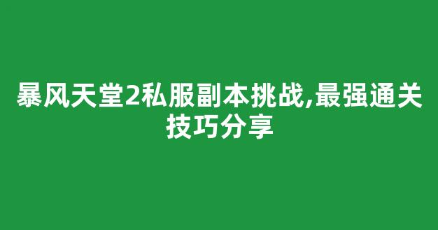 暴风天堂2私服副本挑战,最强通关技巧分享