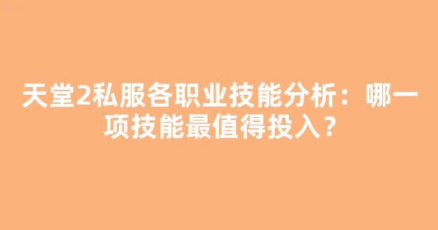 天堂2私服各职业技能分析:哪一项技能最值得投入?