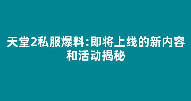 天堂2私服一直以来都受到广大玩家的喜爱,游戏的精彩内容和刺激的活动不断吸引着玩家的热情。近日,关于天堂2私服即将上线的新内容和活动有了不少的爆料信息。今天,我们就来为大家揭秘一下这些即将到来的新内容,一起来看看吧!