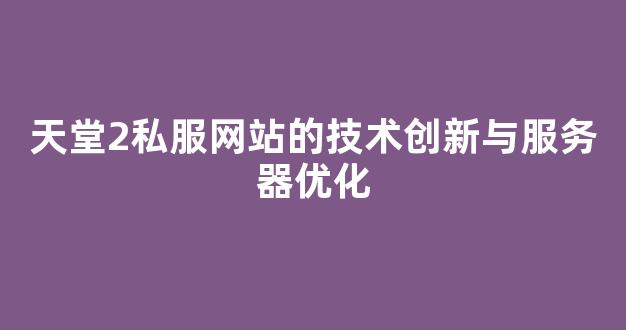 在游戏行业中,服务器的性能和技术创新直接影响到游戏体验和玩家的留存率。尤其是天堂2私服网站,在技术上的创新与服务器的优化更是保证玩家流畅体验和网站稳定运行的关键。本文将详细介绍天堂2私服网站在技术创新和服务器优化方面的最新进展。