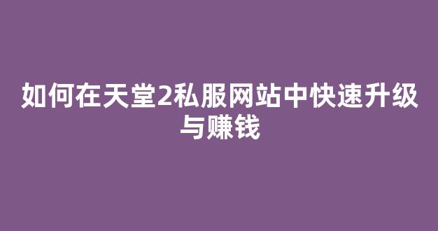天堂2私服网站是很多玩家的天堂,提供了一个比官方服务器更为灵活的游戏体验。玩家可以在这些私服中享受更加高效的升级方式和更为丰富的赚钱途径。本文将详细介绍如何在天堂2私服中快速升级与赚钱,让你在游戏中迅速积累财富和经验。