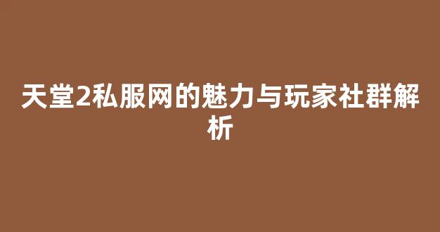 随着网络游戏的快速发展,越来越多的游戏私服进入了玩家的视野。天堂2私服网便是其中之一,它凭借其独特的魅力吸引了大量的玩家。本文将详细解析天堂2私服网的魅力及其玩家社群,帮助你更好地理解这个游戏背后的魅力。