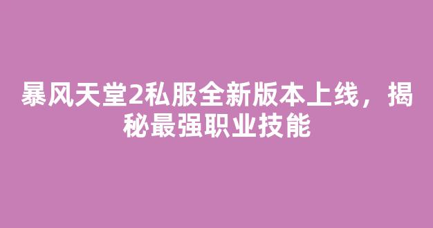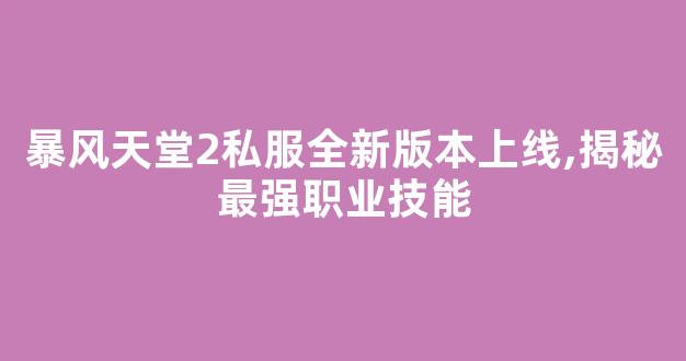 暴风天堂2私服全新版本上线,揭秘最强职业技能