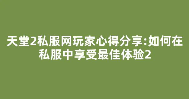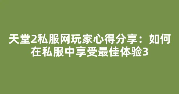 天堂2私服网玩家心得分享:如何在私服中享受最佳体验