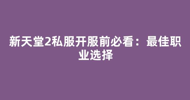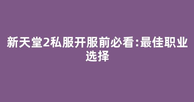 新天堂2私服开服前必看:最佳职业选择