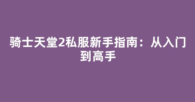 骑士天堂2私服新手指南:从入门到高手